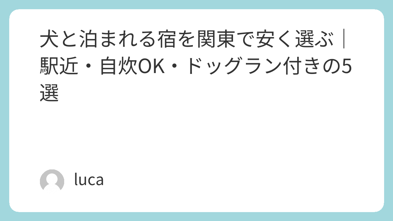 - 東京や関東圏で、愛犬と一緒にリーズナブルに泊まれる宿を探している